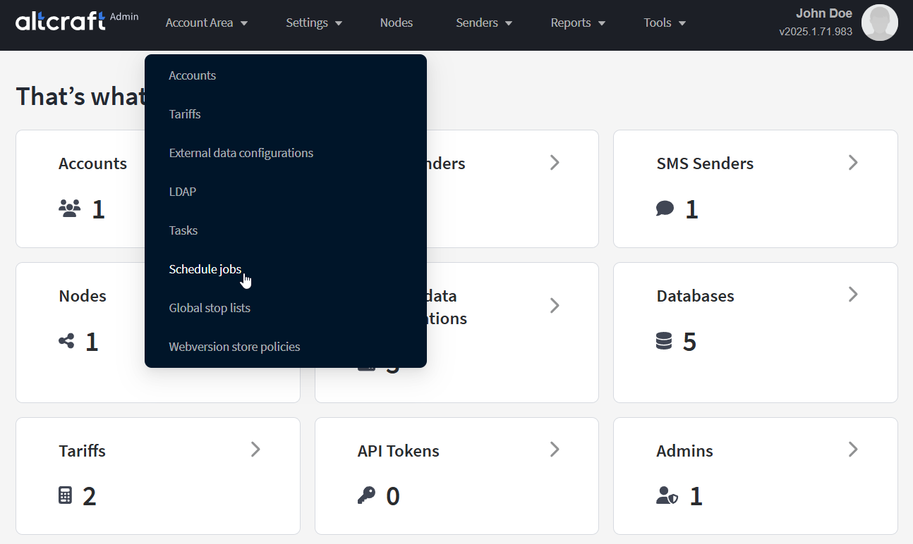 To view the jobs, in the main menu select Account Area — Schedule Jobs: