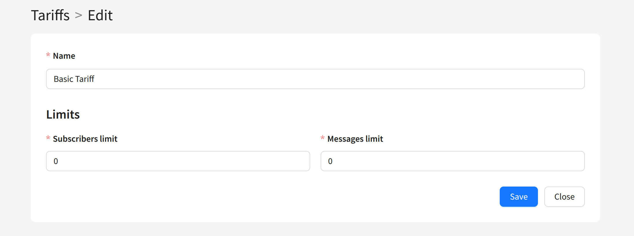 If you do not plan to set limits, leave the values at zero. Such a tariff will be unlimited.