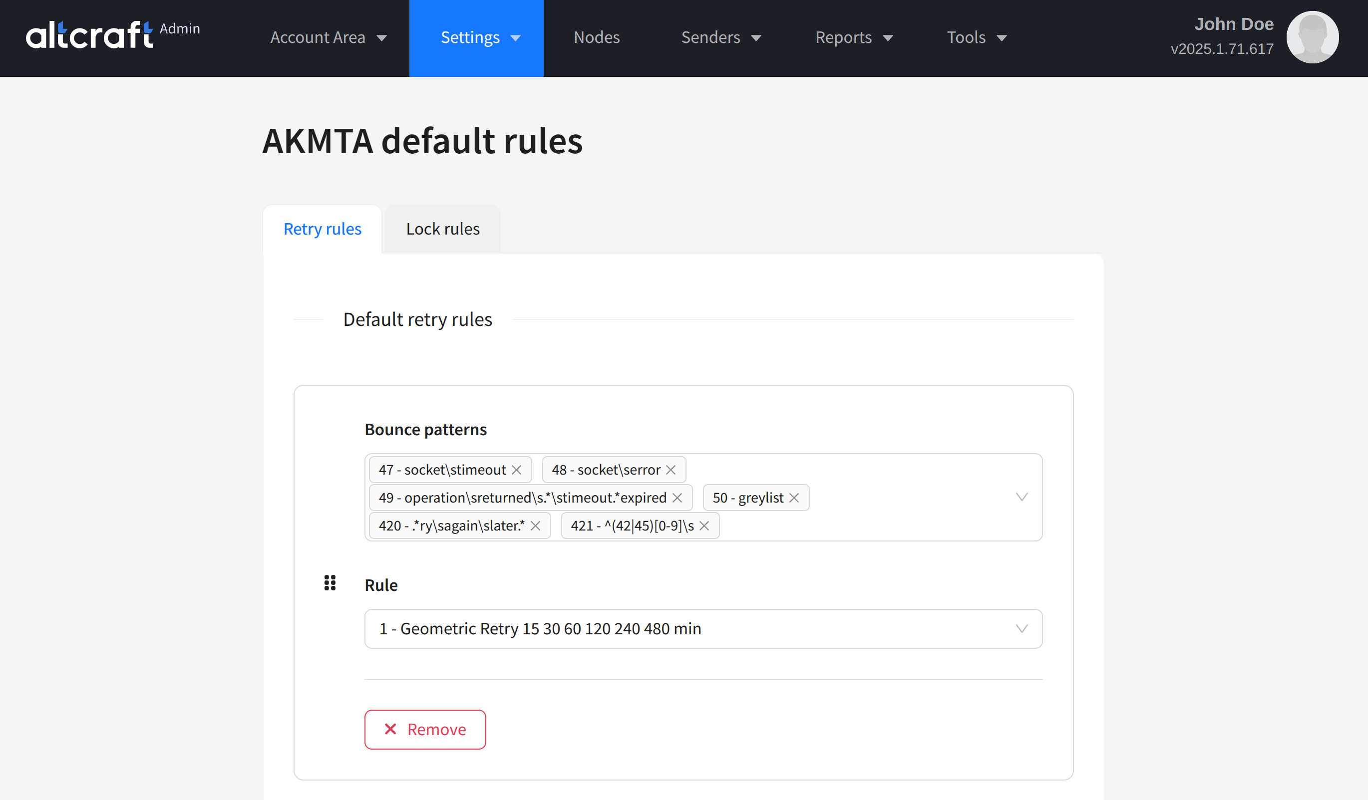 Default rules are configuration records that define AKMTA sending scenarios when receiving negative responses from all or specific ISPs, as well as from certain groups of ISP domains.