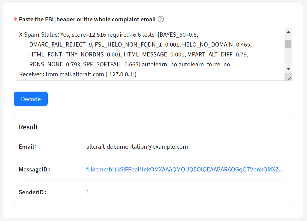 ARF Decoder is a tool used to decode messages in the ARF (Abuse Report Format), providing information about the original message based on the received complaint.