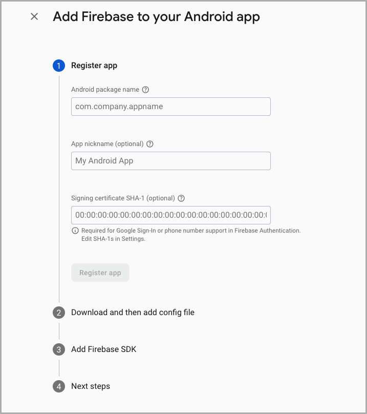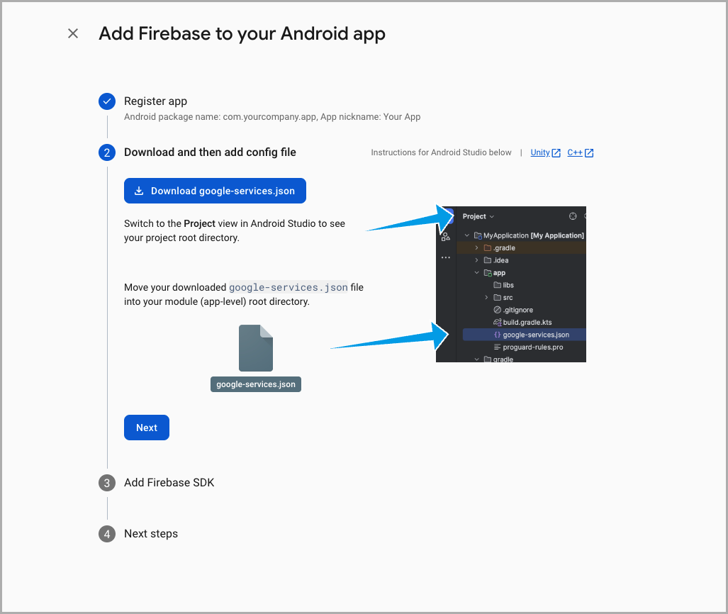). Также необходимо загрузить Firebase-файл с приватным ключом (.json):