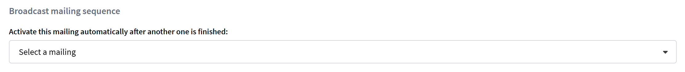 This option is available only for broadcast mailings. It allows to automatically launch a mailing after the previous mailing is finished. For this, select the mailing, after:
