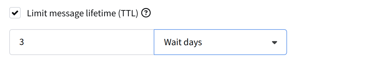 To configure TTL, enable the Limit message lifetime (TTL) option and specify the waiting time in days, hours, minutes, or seconds.