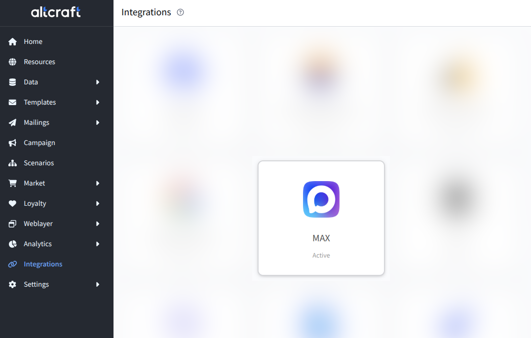 The integration is ready to use. The next step is configuring a resource for sending Campaigns to MAX messenger chats.