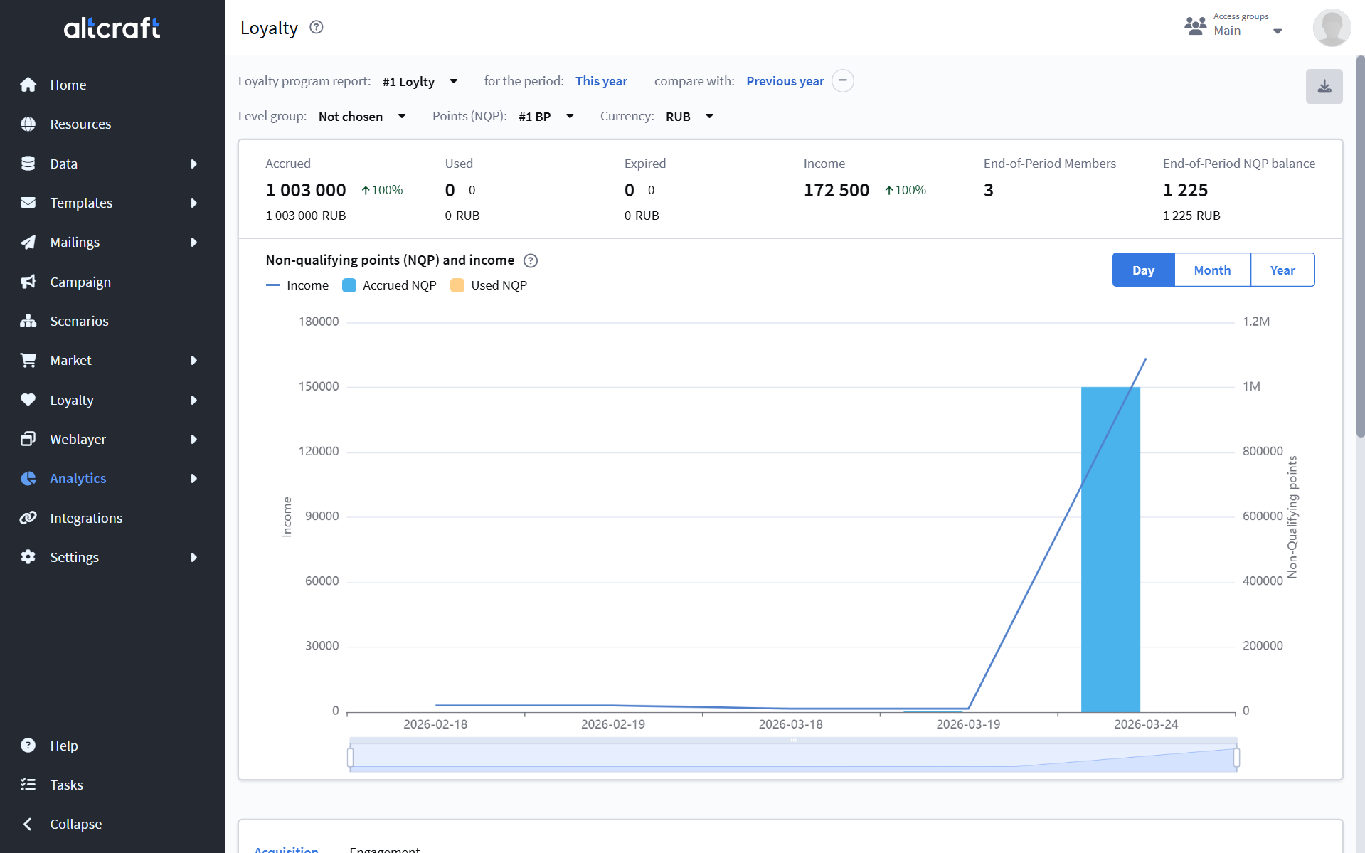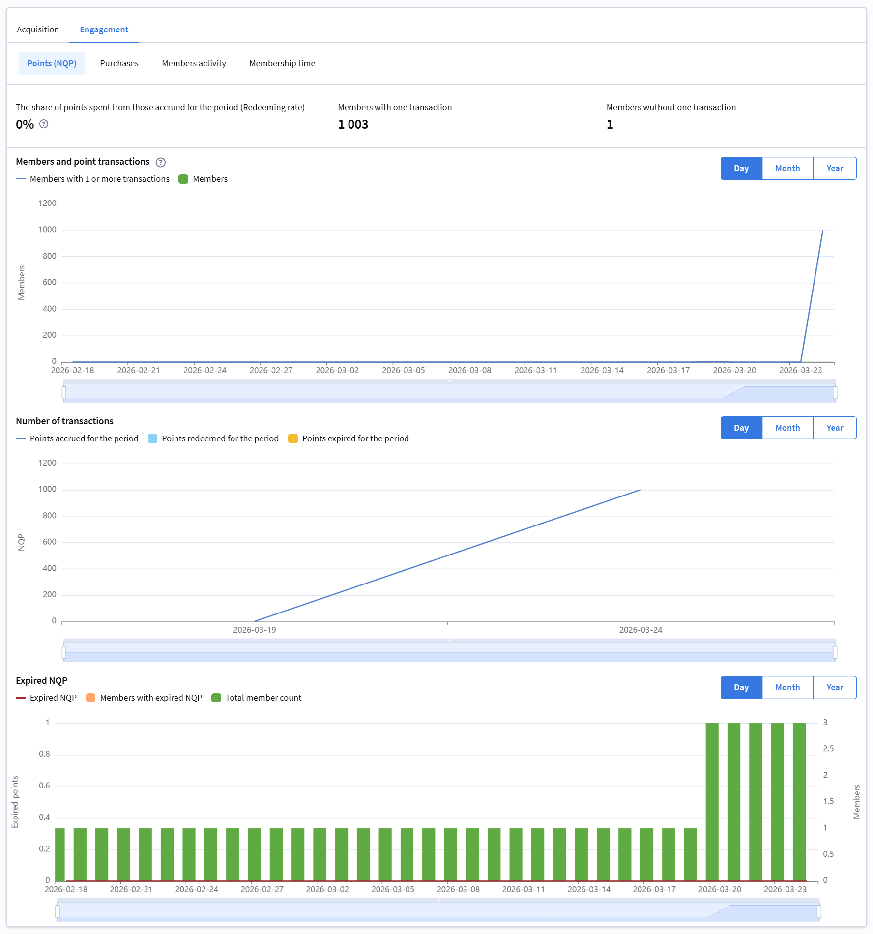 One of the key metrics used in analytics is NQP points. NQP are points that do not participate in loyalty tier calculations but affect member activity. In other words, these are bonus points that a member earns and spends.