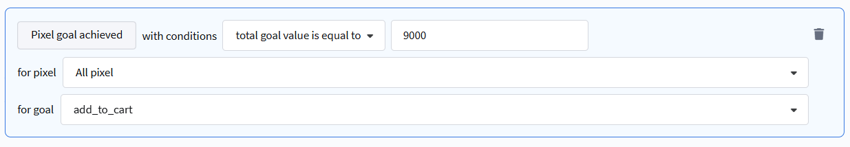 - Meets / Does not meet complex condition — extended selection based on additional data passed when registering a goal via API.