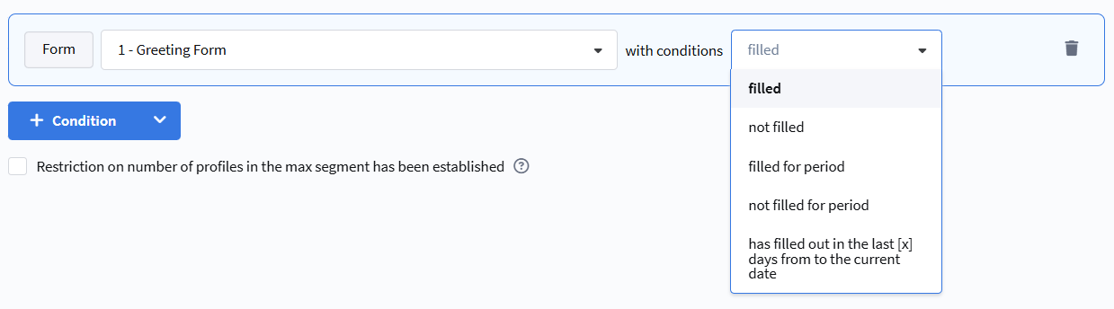 - filled — the subscriber has ever filled out the specified form.