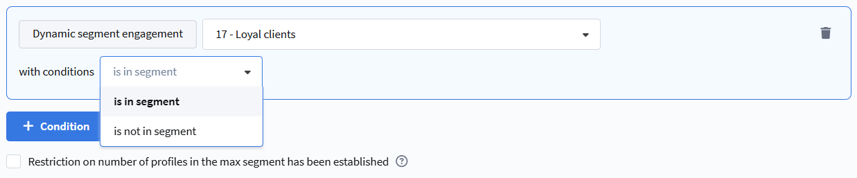 - in segment — the profile is included in the selected dynamic segment.