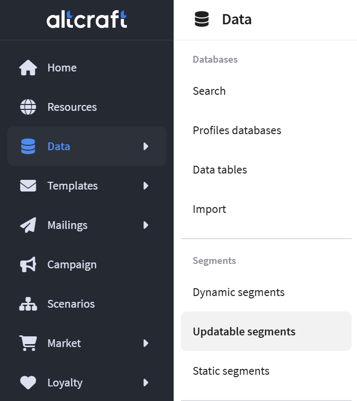 - Usage: The segment can be used in the same places as a static segment (for example, in mailings, scenarios, triggers).