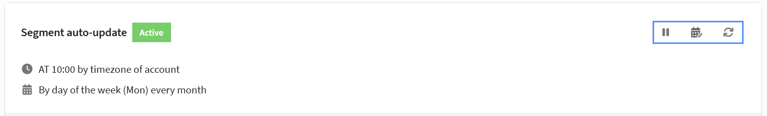 A scheduled segment is a segment that automatically recalculates its composition based on specified conditions according to a set schedule (for example, once a day). Its list of profiles is current at the moment of the last recalculation.