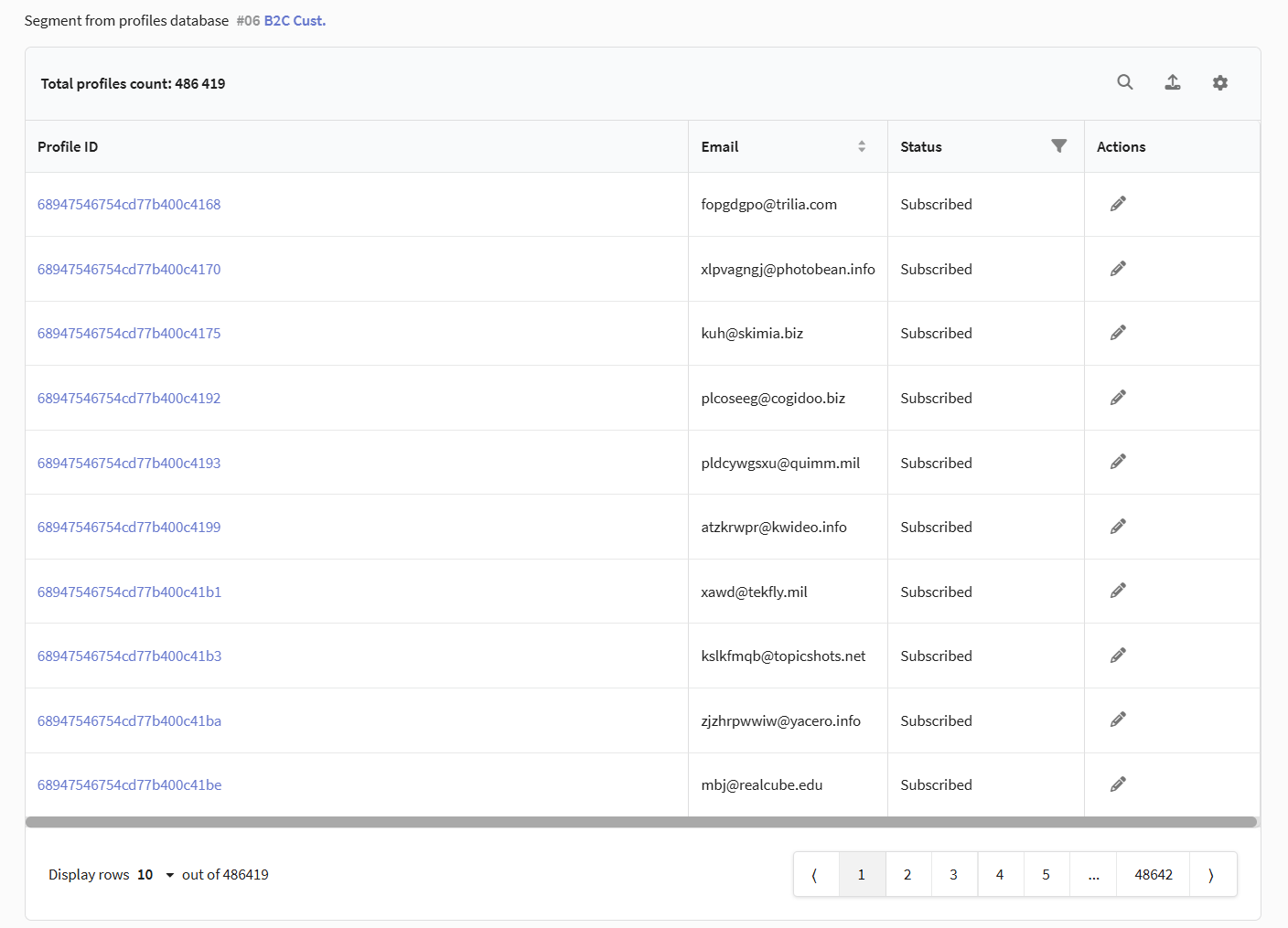 - Export Profiles: Export data of profiles included in the segment to an external file.