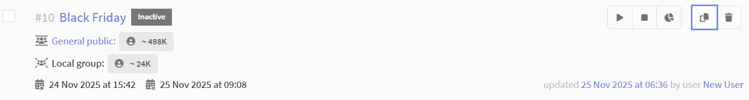 | Waiting | The campaign is activated with a delayed start. The campaign starts automatically at the scheduled time. |