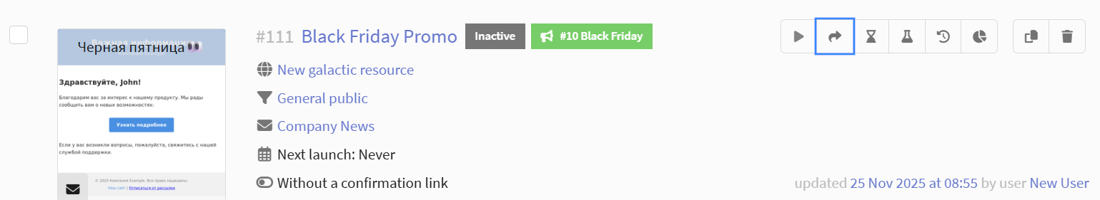 Previously, all types of marketing mailings in the platform were called "Campaigns". In the new version they have been renamed to "Mailings", and the new "Campaigns" are a broader tool.