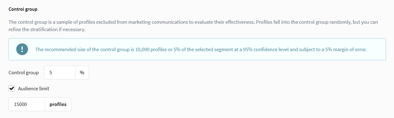 When using an updatable segment as the main campaign segment, the audience expansion function is not available. New profiles are added to the campaign audience only as a result of segment recalculation.