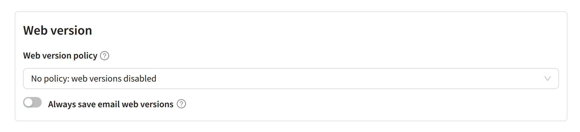 In this section, specify the web version storage policy for the account. Channels and retention periods are configured when creating a separate policy. Here you can also enable saving web versions of all email messages: