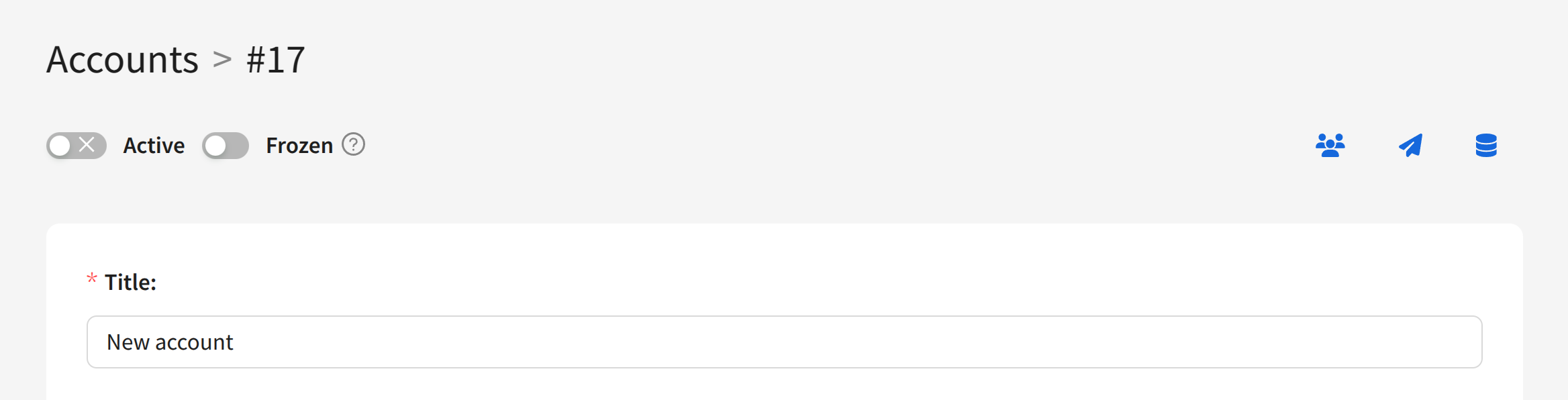 - Freezing the account. When an account is frozen, creating and editing objects is not available.