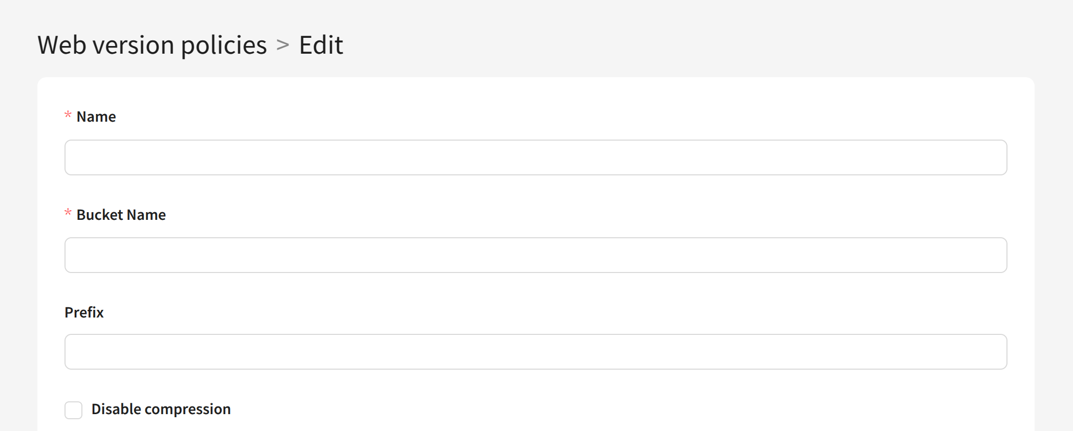 - Bucket Name — the name of the bucket (container) where web version objects will be stored. The name can include only lowercase Latin letters, numbers, dots (.) and hyphens (-). Length must be from 3 to 63 characters.