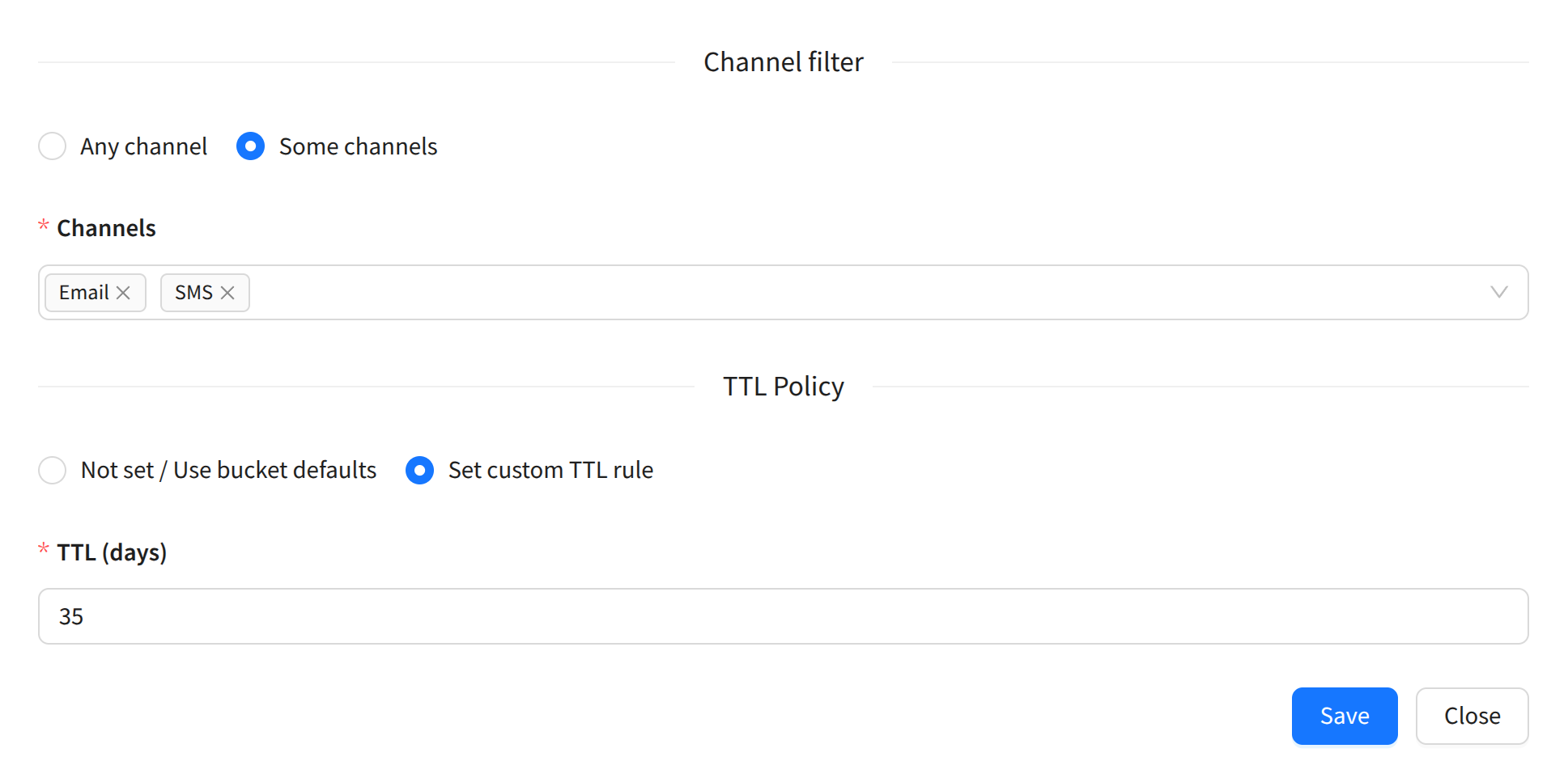 - Set custom TTL rule — specify the retention time manually in the field below.