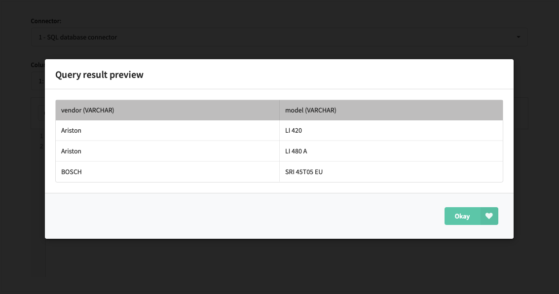 When you click the eye icon — if everything's ok — you will see query preview.