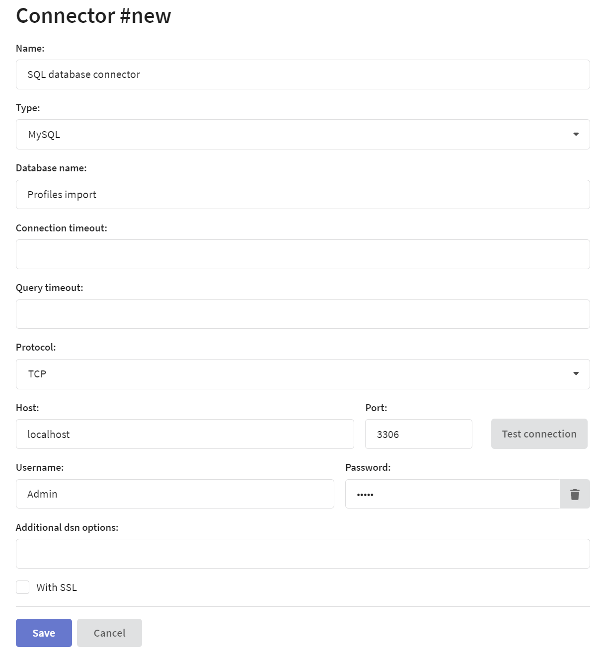 - Type — database management system (MySQL, MSSQL, PostgreSQL, Oracle and ClickHouse are supported).