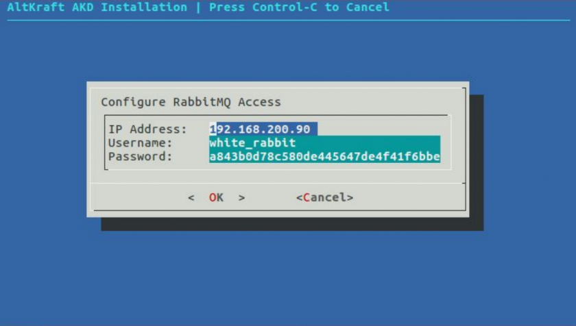 7. Configure RabbitMQ Access — message broker configuration. Local installation is recommended. Specify public IP, Username and Password. Must be accessible by sending server.