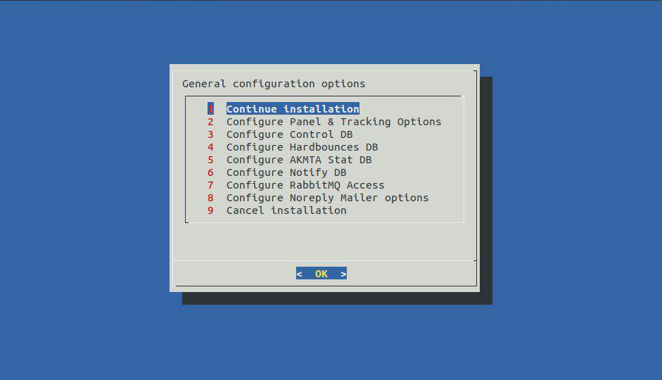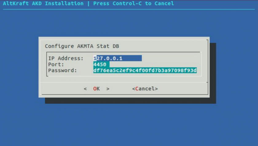 5. Configure AKMTA Stat DB — AKMTA sender statistics database. Can be installed locally, or on apublic IP address, or on any IP address accessible by the sending server.
