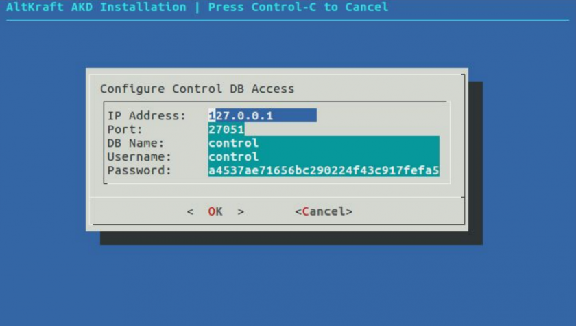 After that a request to Control DB for existing database configurations. If nothing is found, the following components will be set up.