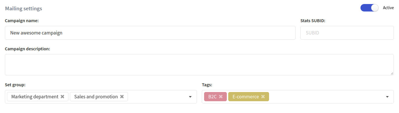 If you want to launch a campaign right after its creation, toggle the option "Start the campaign right now" at the bottom part of the page.