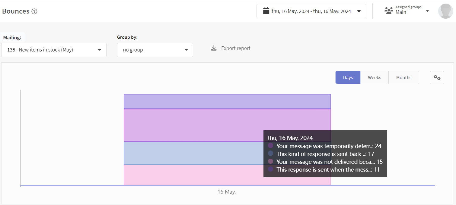 To analyze the problems of email message delivery, use Bounces and Undeliveries reports: