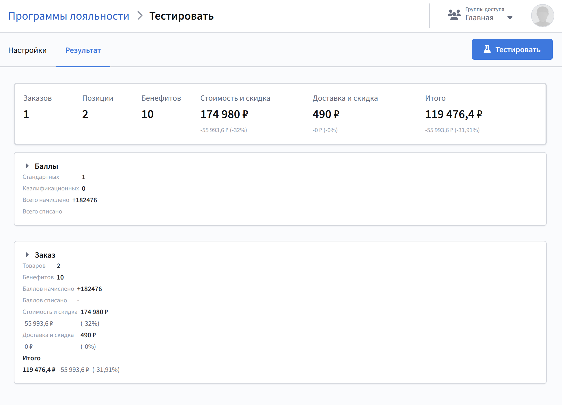 Тестирование позволит вам точно понять, как и в каком порядке для участников лояльности сработают бенефиты.