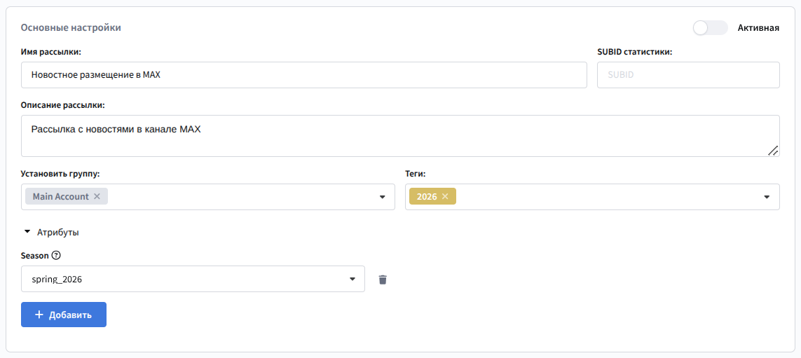 • Создание рассылки с нуля