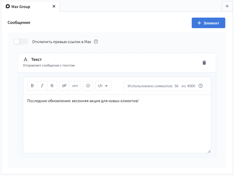 Канал MAX Group позволит вам настроить автоматическую публикацию постов в каналах и группах мессенджера с помощью размещения.