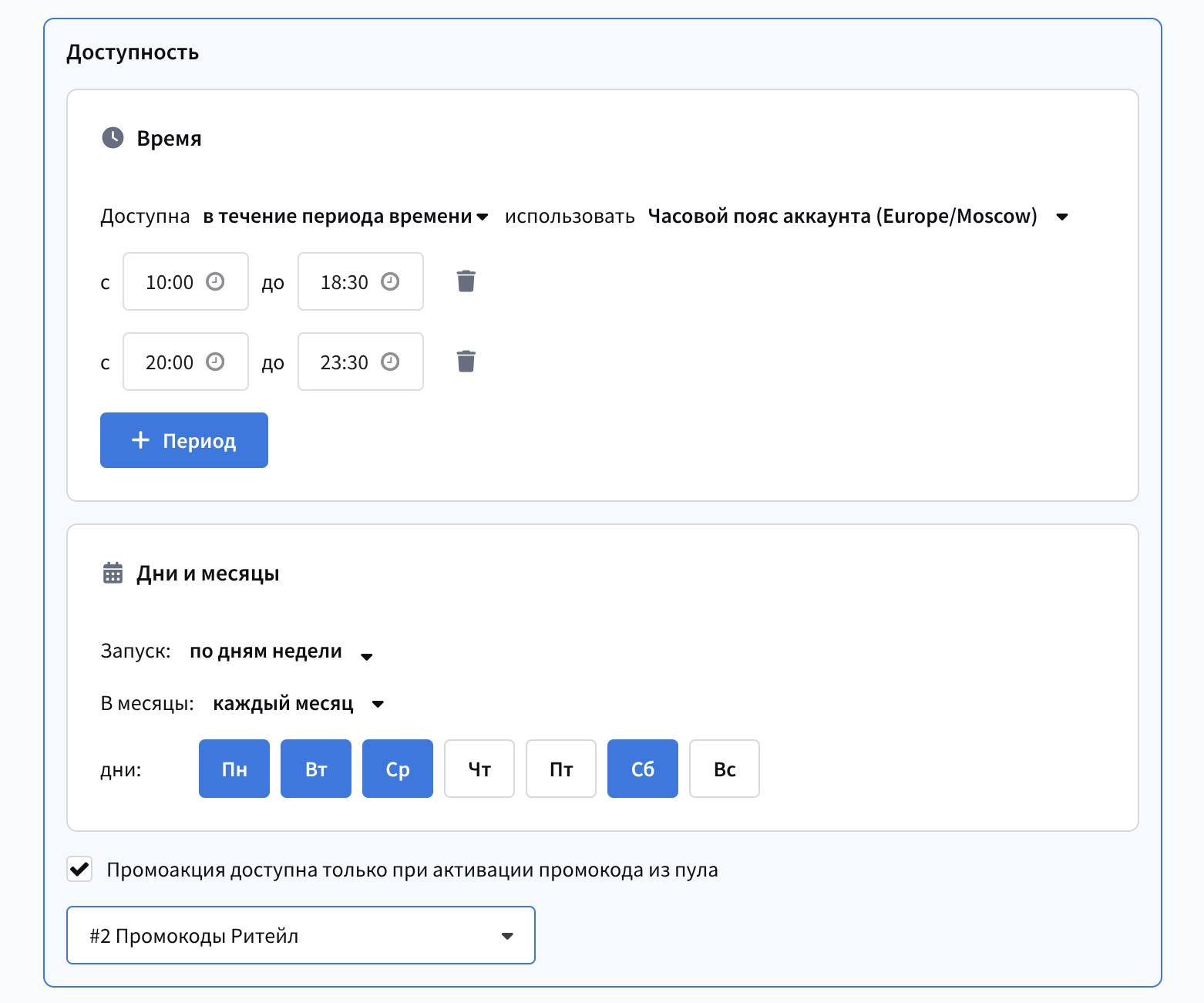 Срок действия баллов — определяет, как долго начисленные баллы будут действительными. Можно задать срок в днях, неделях, месяцах или годах. После истечения указанного срока баллы аннулируются.