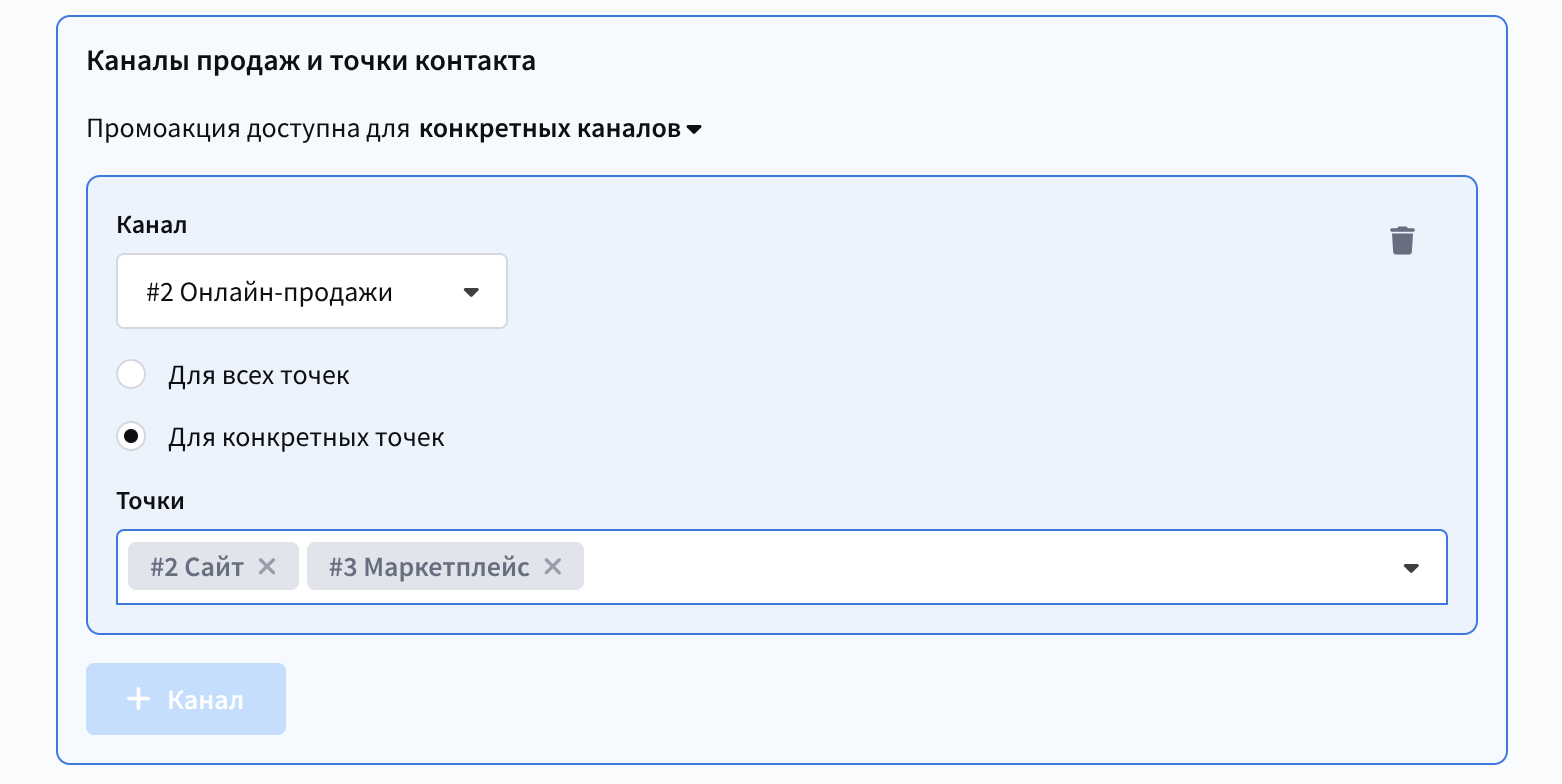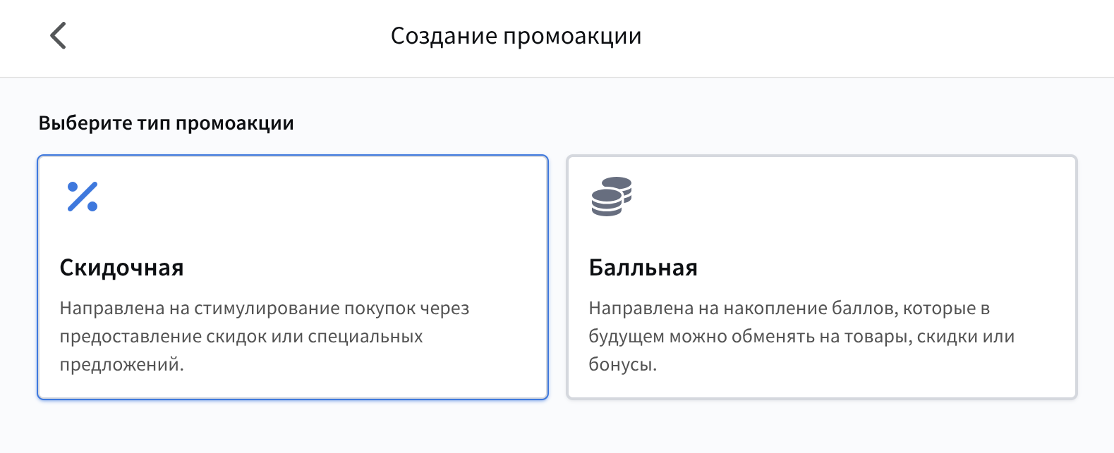 Баллы программы лояльности — этот блок отвечает за создание и управление типами баллов, которые используются в рамках программы лояльности. Укажите имя и дополнительный идентификатор ваших баллов, при необходимости добавьте описание.
