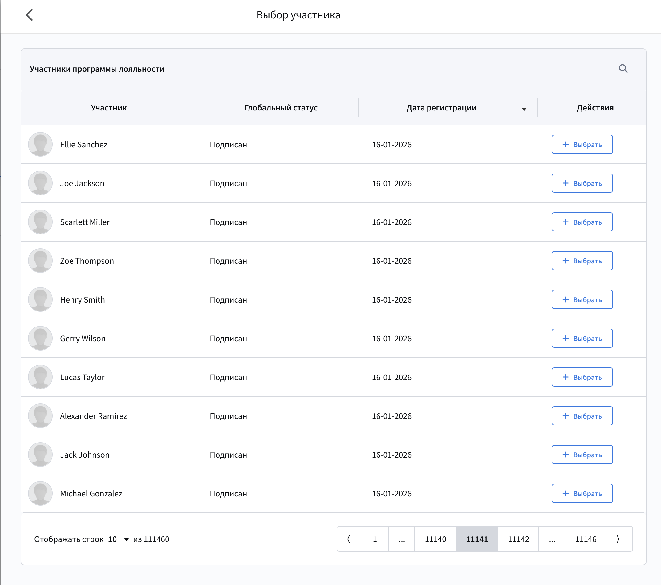 Выберите базу данных, из которой будут браться участники.