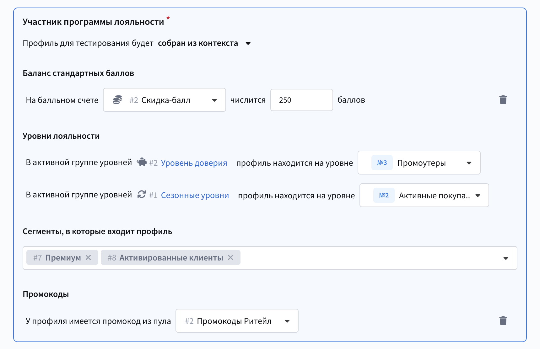 Привязка к группе уровней — позволяет связать балл с определенной группой уровней лояльности (например: Bronze, Silver, Gold). Это может быть использовано для настройки разных правил начисления или курс а в зависимости от уровня клиента.