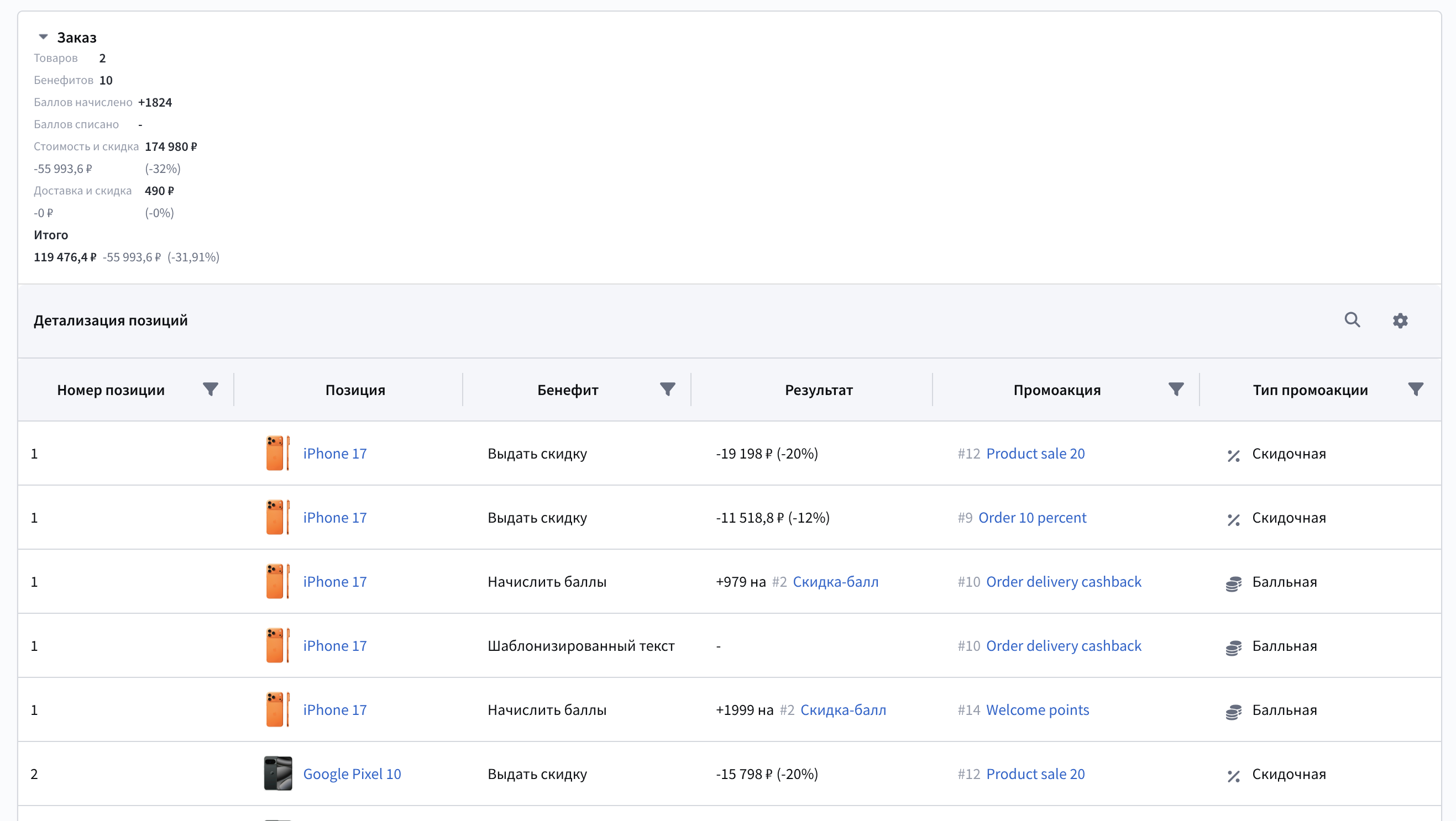 Баллы программы лояльности