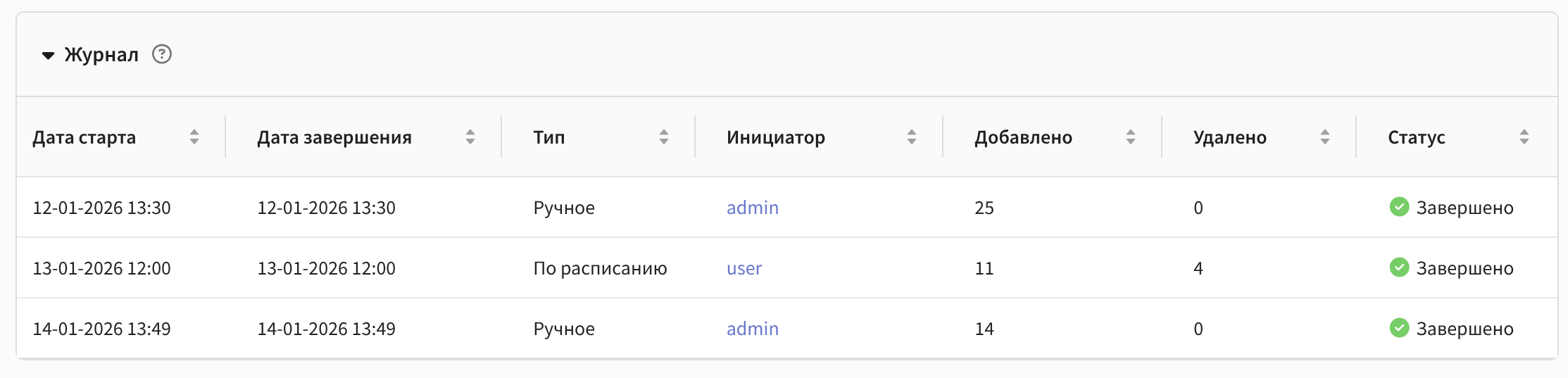 - Инициатор: имя пользователя, который инициировал операцию.