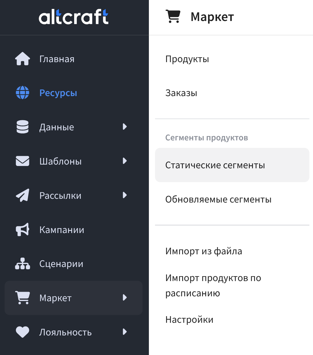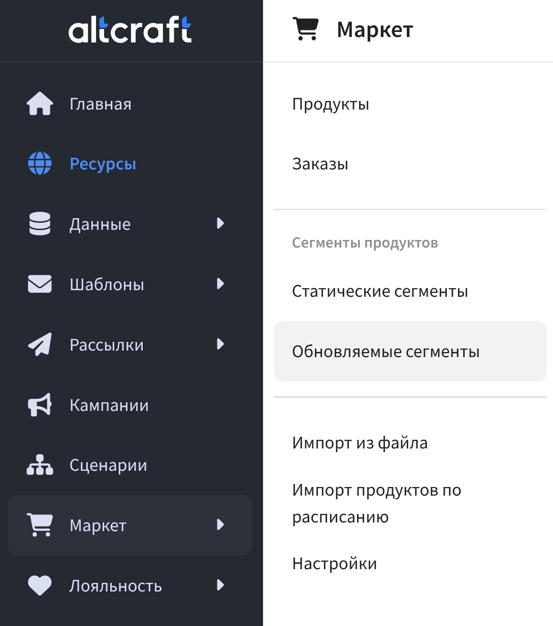 Обновляемые сегменты — обновляемые по расписанию наборы продуктов и их модификаторов (SKU), отобранных по определенным условиям. Такой сегмент можно также пересчитывать вне расписания самостоятельно.