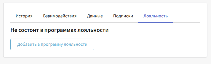 В этом разделе отображается информация об участии профиля в программах лояльности. Если профиль не состоит в программе, его можно зарегистрировать в ней: