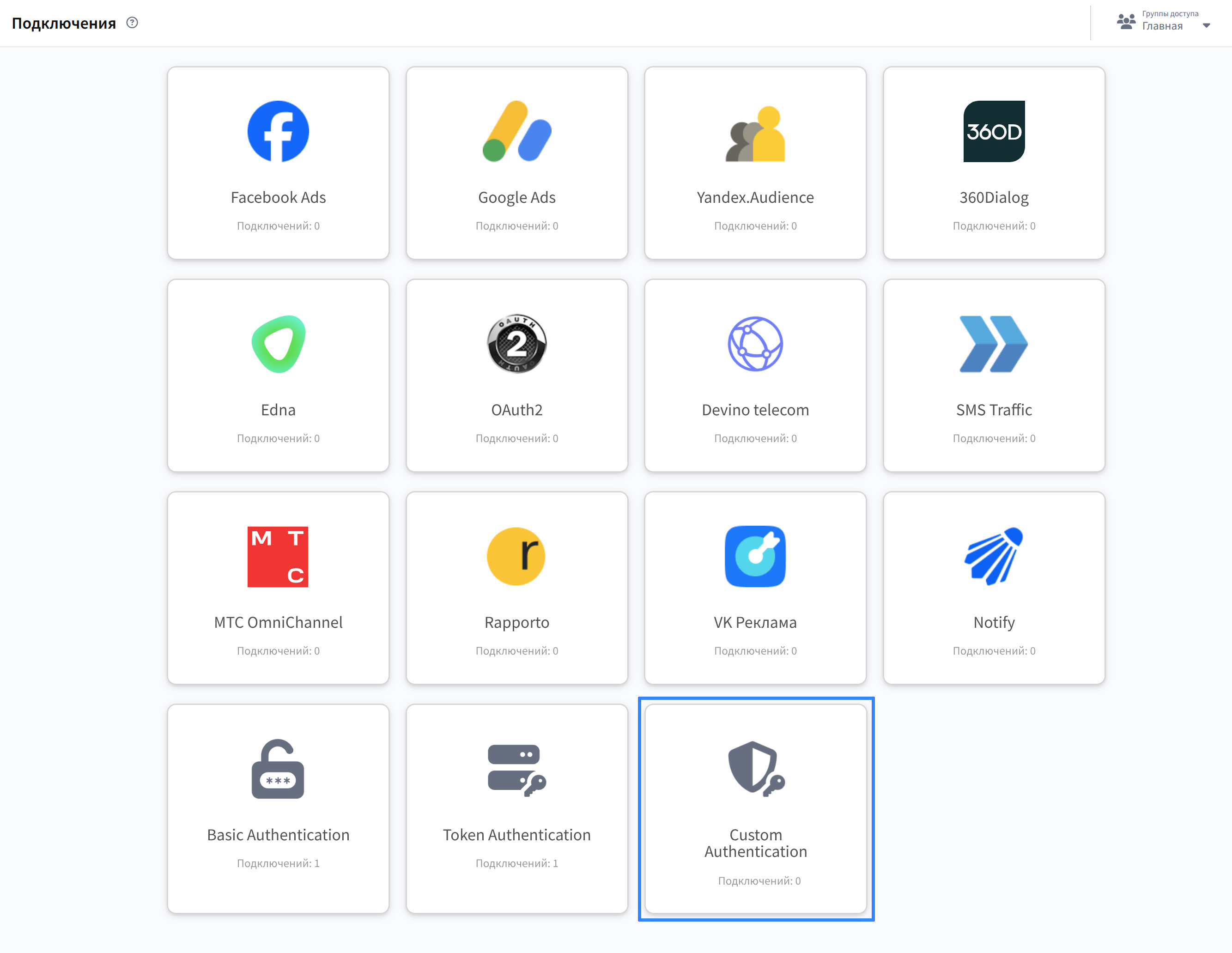 Подключение через Custom Authentication