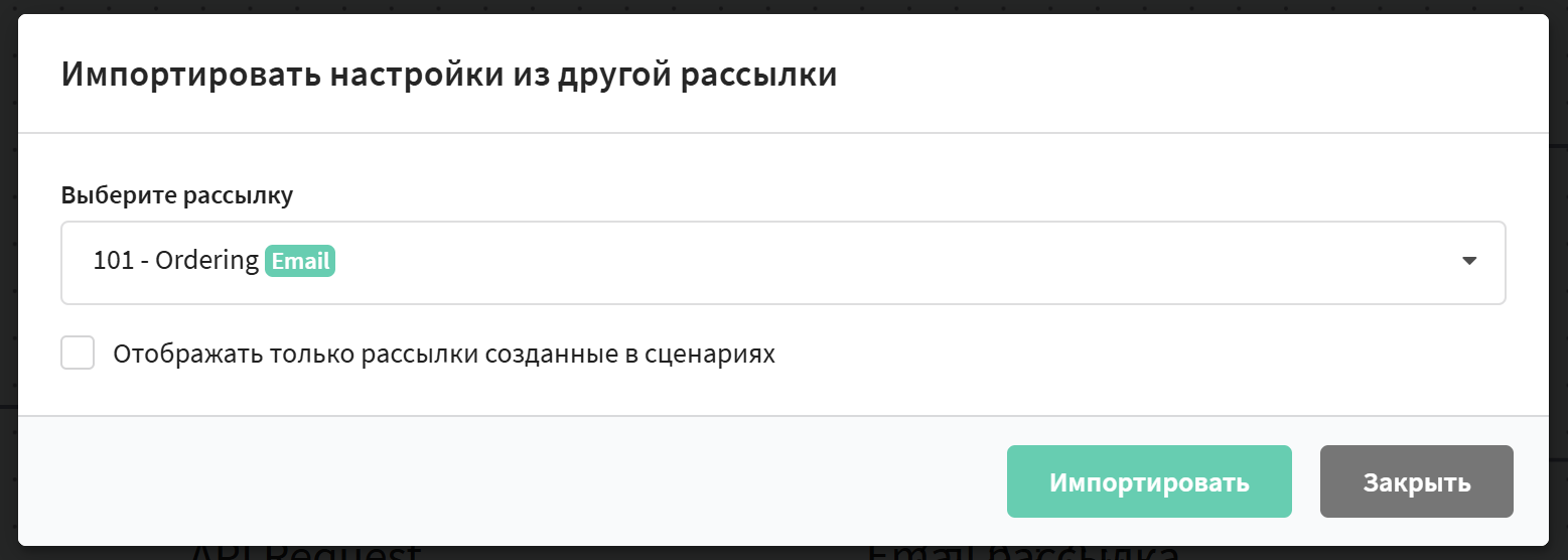 Вы также можете перенести историю профилю из исходной базы в целевую. Для этого воспользуйтесь опцией "Копировать историю профиля" и выберите период, данные за который хотите перенести. История профиля включает действия в кампаниях (отправки, открытия, клики и др.), события подписок, импорта, пикселей, назначение промокодов и участие в статических сегментах.