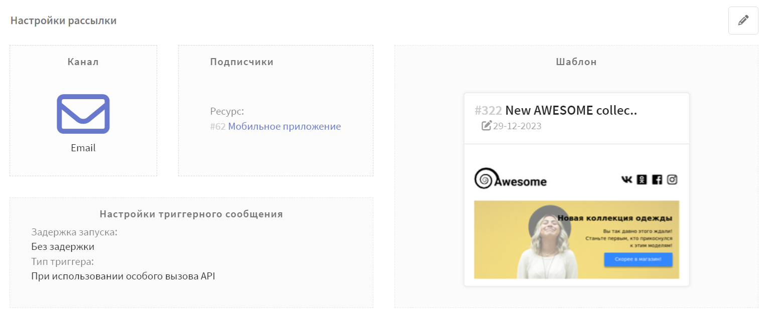 | Открыт Email | Пиксель отслеживания зафиксировал открытие письма по выбранному шаблону. |