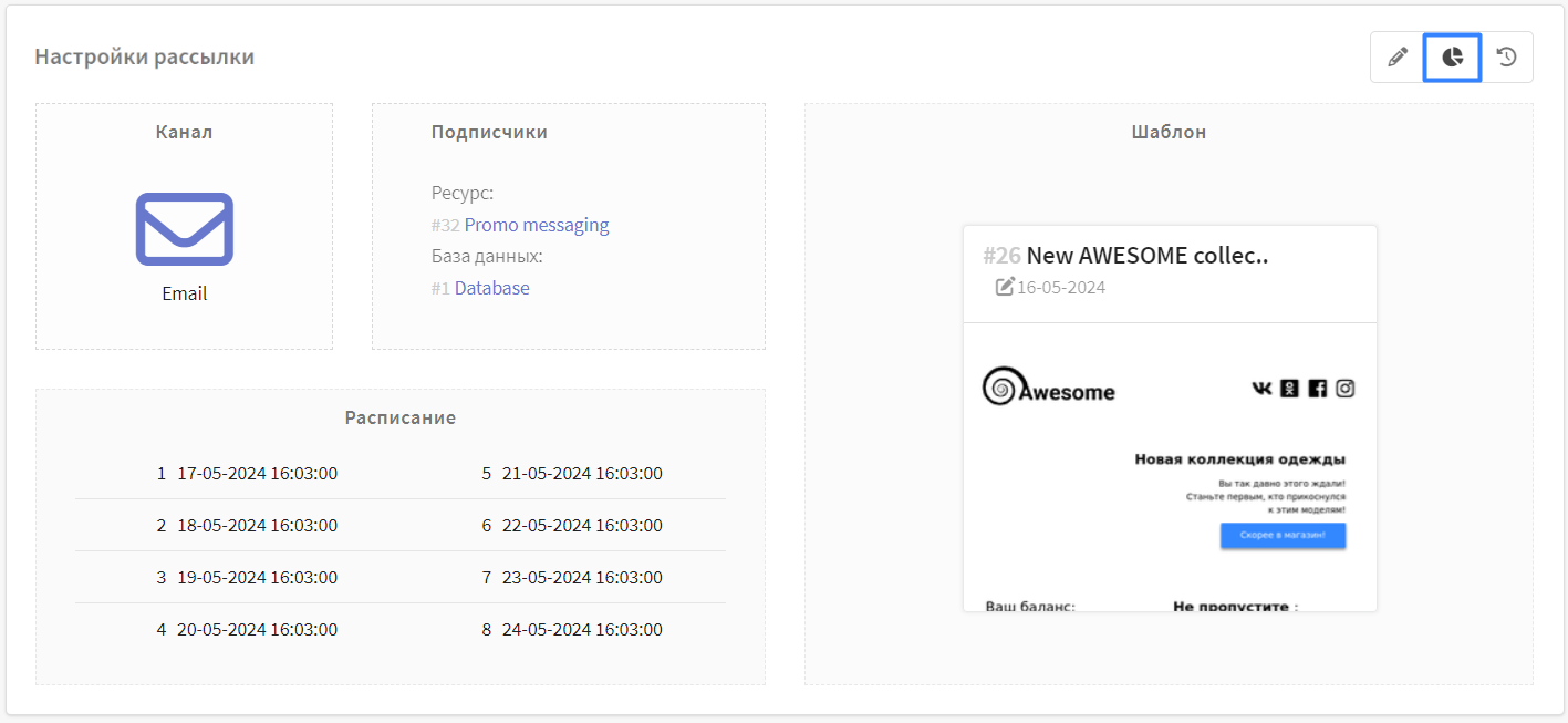 Подробную инструкцию по настройке Регулярной кампании вы найдёте на этой странице.