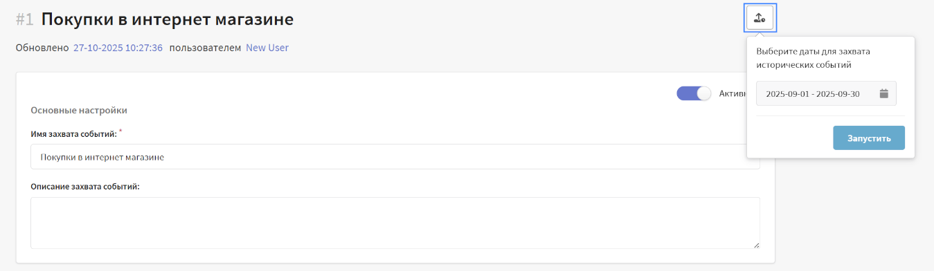 В Основных настройках введите имя нового захвата. Здесь же находится переключатель для активации процесса отправки событий: